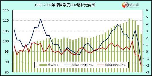 德國聯(lián)邦統(tǒng)計(jì)局公布的數(shù)據(jù)顯示,德國國內(nèi)生產(chǎn)總值第一季度經(jīng)季調(diào)后環(huán)比下降3.8%,這是自1970年季度數(shù)據(jù)開始匯編以來的最大單季降幅,金融危機(jī)抑制了德國的出口和投資。