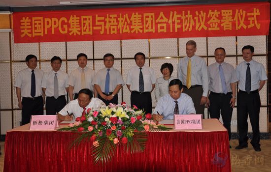 公司董事長孔仕才與美國PPG工業(yè)公司中國區(qū)總經(jīng)理楊衛(wèi)華(右)簽約