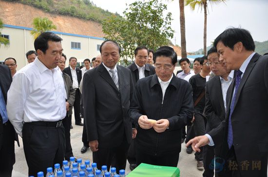 中共廣西區(qū)黨委書記郭聲琨(中)在公司視察,左為梧州市委書記劉志勇;右二區(qū)發(fā)改委主任黃方方;左二董事長孔仕才;右總經理車乾池