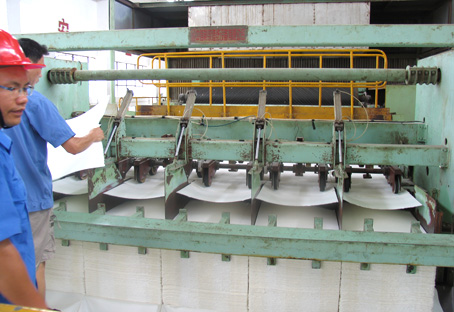 圖為正常生產(chǎn)中的賀紙漿板車(chē)間