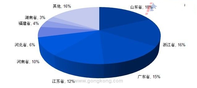 2010年中國(guó)造紙產(chǎn)量地區(qū)分布