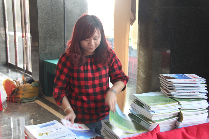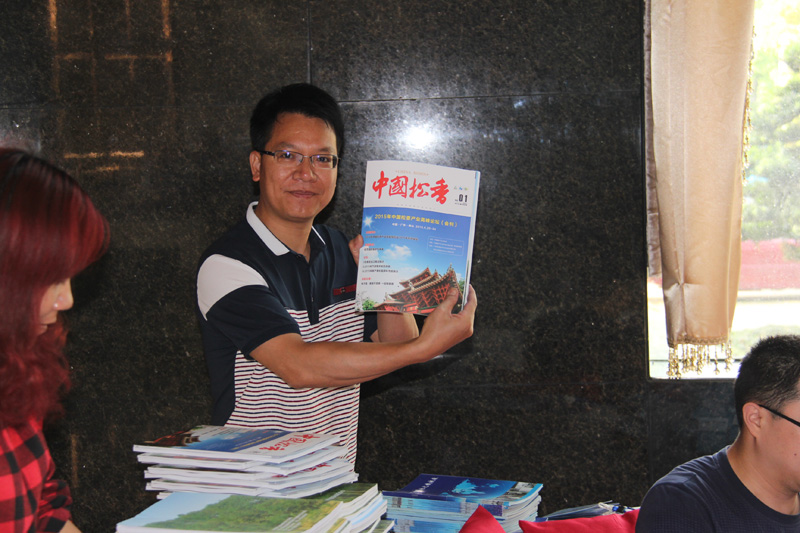 (華訊松香網(wǎng)主編在展示設(shè)計精美的會刊)