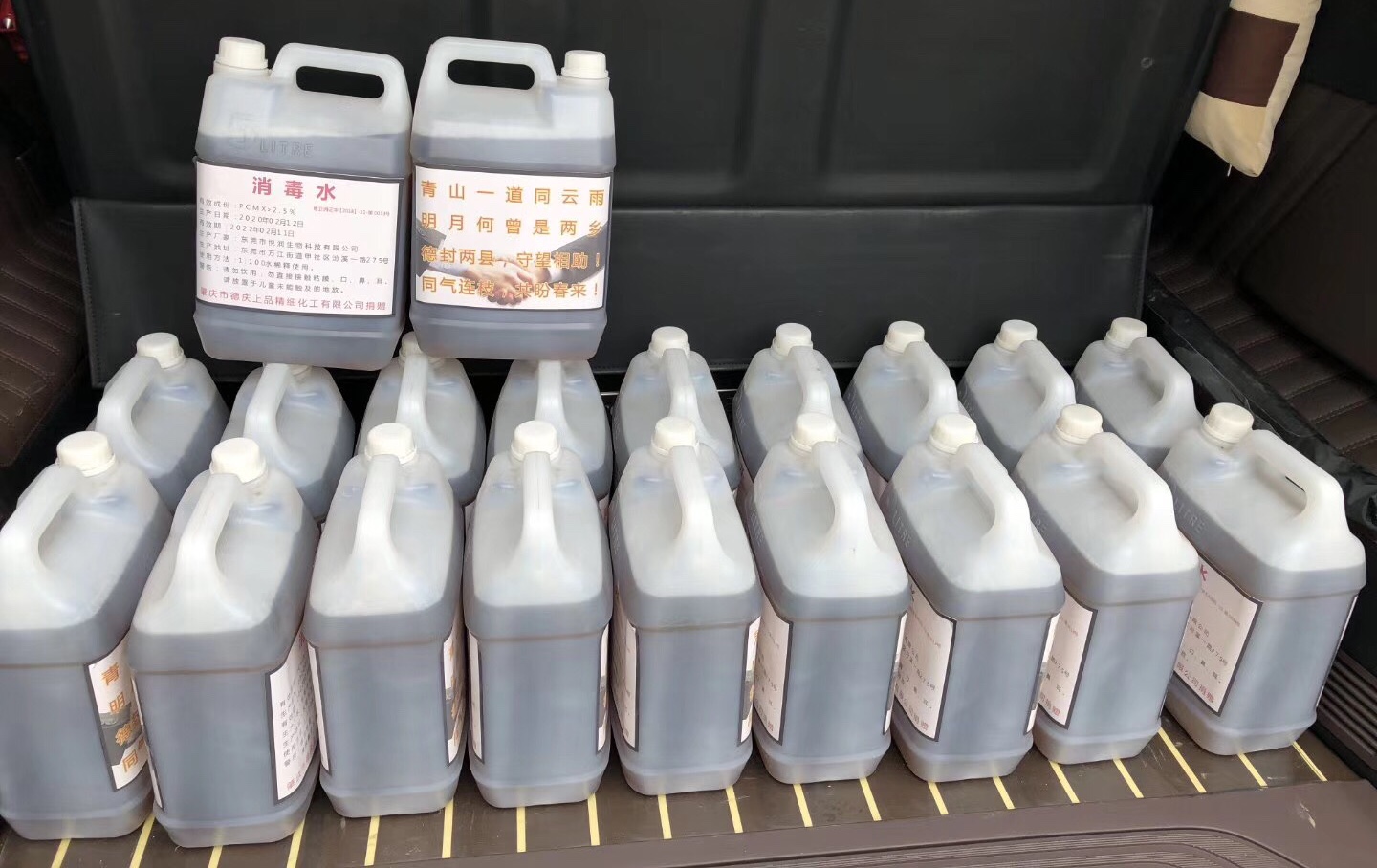 肇慶市德慶上品精細化工有限公司及總經(jīng)理周啟斌本人 現(xiàn)金捐贈38萬元,消毒液和口罩超16萬元,