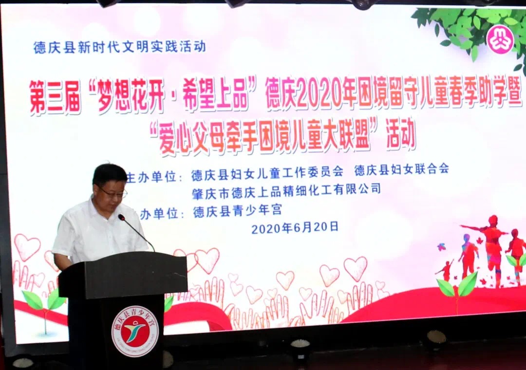 在20日當(dāng)日的活動(dòng)中,周啟斌先生作重要講話。他說(shuō):今年是中央政府全面打贏扶貧脫貧攻堅(jiān)之年,是全面建成小康社會(huì)目標(biāo)實(shí)現(xiàn)之年。讓中國(guó)幾千萬(wàn)人全部脫貧,責(zé)任之大、任務(wù)之重前所未有。這就需要我們所有人都能夠伸出援手扶一把,特別是幫助那些貧困家庭的孩子們,資助他們繼續(xù)求學(xué)讀書(shū),讓讀書(shū)求知之路一個(gè)都不能少!但是,新年伊始,一場(chǎng)突如其來(lái)的新型冠狀肺炎疫情在全國(guó)直至全球迅速蔓延,讓我們每個(gè)人身臨其中,經(jīng)歷了一場(chǎng)難以忘懷的“戰(zhàn)疫”,給每個(gè)人、每個(gè)家庭的生活、工作都帶來(lái)了不同程度的影響,企業(yè)停工停產(chǎn),學(xué)校停課,尤其給臨近中高考的學(xué)生們帶來(lái)了挑戰(zhàn)?,F(xiàn)在國(guó)內(nèi)的疫情在政府的有力的管控下取得了突破性的進(jìn)展,各年級(jí)的學(xué)生也相繼走回了校園,我們欣喜地看到孩子們好像突然之間長(zhǎng)大了很多,疫情雖然阻擋了他們學(xué)習(xí)知識(shí)的進(jìn)度,但是沒(méi)有阻擋他們成長(zhǎng)的步伐。所謂少年強(qiáng)則國(guó)家強(qiáng),關(guān)愛(ài)孩子,就是關(guān)心祖國(guó)的未來(lái)。孩子是祖國(guó)的花朵,兒童是民族的未來(lái),讓他們健康、快樂(lè)地成長(zhǎng),是我們義不容辭的責(zé)任。為了把美好的牽掛化作實(shí)實(shí)在在的行動(dòng),我公司和我本人協(xié)同社會(huì)的一些熱心人士,共同伸出援手,在德慶縣婦聯(lián)的大力支持下,共建“夢(mèng)想花開(kāi)·希望上品”關(guān)愛(ài)德慶困境兒童公益項(xiàng)目,以此舉拋磚引玉、希望能夠吸引更多的社會(huì)各界熱心人士奉獻(xiàn)愛(ài)心,將該項(xiàng)公益活動(dòng)不斷發(fā)展壯大,讓更多的困境兒童受益!贈(zèng)人玫瑰,手留余香!希望我們共同伸出友愛(ài)的雙手,去愛(ài)護(hù)、去支持身陷困境中的孩子,讓他們也同樣放飛夢(mèng)想,收獲希望!