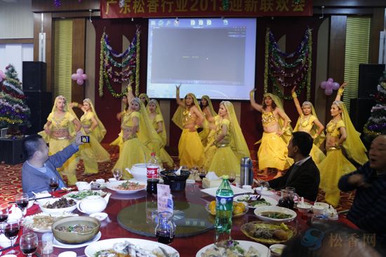引住了;廣東農(nóng)墾帶來了精彩的武術(shù)表演,臺下觀眾意猶未盡齊聲高喊“再來一個”;廣東林產(chǎn)帶來串燒舞蹈《快樂的小天鵝+No body+江南Style》,黑天鵝(男)奔放可愛的舞姿引來了晚會的又一撥高潮;由肇慶市金龍松香制桶有限公司帶來的歌曲《執(zhí)著》特地修改了歌詞,將我們對松香行業(yè)的執(zhí)著用美妙的歌聲表達(dá)得淋漓盡致?!毒羰课琛?廣東威斯達(dá))、《大阪城的姑娘》(廣東農(nóng)墾)給觀眾帶來了各具風(fēng)格的感官享受,歌曲《紅紅的日子》、《歡天喜地》(金南化工)、《側(cè)面》、《一首歌一個故事》(廣東富侍德)將大家的思緒牽回又帶遠(yuǎn),沉浸在對過去的懷念和對未來的期望中。最后,廣州科茂的舞蹈《印度舞》以華麗的服裝、男扮女裝混入表演者的搞笑陣容和專業(yè)優(yōu)美的表演獲得了全場最熱烈的掌聲,把晚會推至最后的高潮。文藝節(jié)目陸續(xù)上演的同時,晚會還穿插了豐富抽獎活動,在晚會接近尾聲時,廣州鴻孚物流的劉總為了助興還特別增加了現(xiàn)金特別獎1名,21:00左右,聯(lián)歡晚宴在觥籌交錯、歡聲笑語中圓滿落幕,接著進(jìn)入到更能自我發(fā)揮的卡拉OK環(huán)節(jié)。