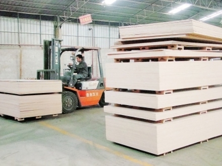 貴港市依托豐富的林業(yè)資源,大力發(fā)展林產(chǎn)品加工業(yè)。今年一季度,全市人造板產(chǎn)量達(dá)85萬(wàn)立方米,同比增長(zhǎng)70%。圖為林產(chǎn)品加工企業(yè)昌海木業(yè)有限公司生產(chǎn)車(chē)間一角。