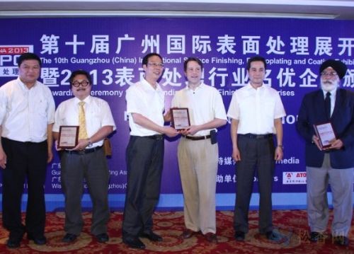在5月20日晚上舉行的開幕酒會(huì)上,各協(xié)會(huì)領(lǐng)導(dǎo)出席了開幕酒會(huì)并致辭。當(dāng)晚,表面處理行業(yè)“名優(yōu)企業(yè)頒獎(jiǎng)典禮”上的六項(xiàng)大獎(jiǎng)也分別揭曉,業(yè)內(nèi)多家權(quán)威媒體也在現(xiàn)場(chǎng)對(duì)本屆開幕及頒獎(jiǎng)典禮進(jìn)行了采訪報(bào)道。