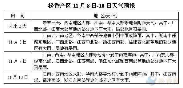 松香產(chǎn)區(qū)11月8日-10日天氣預(yù)報(bào)