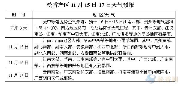 華訊松香網(wǎng)溫馨提醒:未來三日,受中等強冷空氣影響,多數(shù)產(chǎn)區(qū)將迎降溫降雨天氣,其中江南、華南等地大部區(qū)域有中到大雨,局地暴雨。另未來十天,多數(shù)產(chǎn)區(qū)降溫降雨現(xiàn)象仍較頻繁,采脂工人上山積極性或會受影響,局地提前下山情況增多可能性較大。