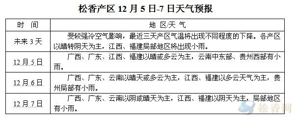 松香產(chǎn)區(qū)12月5日-7日天氣預(yù)報(bào)
