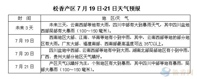 松香產(chǎn)區(qū)7月19日-21日天氣預(yù)報(bào)