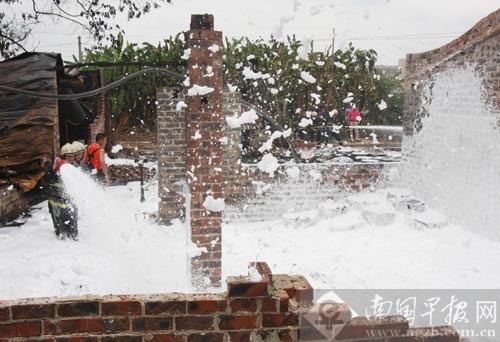 消防官兵用泡沫滅火。南國早報記者 唐輝吉攝