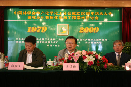 中國林學(xué)會林產(chǎn)化學(xué)化工分會(以下簡稱林化分會)成立三十周年紀(jì)念大會暨林業(yè)生物質(zhì)化學(xué)與工程學(xué)術(shù)研討會于2009年10月17~18日在南京召開。會議由中國林科院副院長、林化分會副理事長儲富祥主持,中國林科院林化所蔣劍春所長致歡迎辭,林化分會宋湛謙理事長致辭。參加此次會議的正式注冊代表120多名,分別為來自18個省市自治區(qū)的大學(xué)、科研院所、生產(chǎn)企業(yè)和市場貿(mào)易等方面的教授、專家、研究人員、企業(yè)家。在慶祝大會的開幕式會上到會會員200余名,共慶林化分會成立三十周年,特別是中國林科院林化所舉全所之力組織舉辦這次大會,并得到南京龍源天然多酚合成廠、北京林業(yè)大學(xué)、南京林業(yè)大學(xué)、張家界貿(mào)源化工有限公司等單位的大力支持。參加慶典大會年齡最高的有86歲的老前輩,年齡最小的碩士研究生、博士生20多歲,可謂四世同堂,說明林化分會具有強(qiáng)大的生命力,這是興旺發(fā)達(dá)的標(biāo)志。