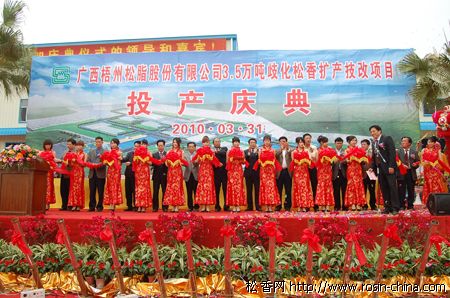 各位領(lǐng)導(dǎo)、各位嘉賓,今天建成投產(chǎn)的3.5萬噸歧化松香擴(kuò)產(chǎn)技改項目,是在2009年12月份才開始建設(shè)的。各參建單位及我司全體員工以高度的責(zé)任感和主人翁精神,日以繼夜的不停拼搏,在克服了無數(shù)的艱難險阻后,僅僅用了3個月的時間就把項目建成投產(chǎn),這不能說不是一個奇跡。這是我們“梧松人”用“梧松”精神在科學(xué)發(fā)展觀指導(dǎo)下奮斗的結(jié)果。這個項目建成后,我司將成為全國最大的歧化松香系列產(chǎn)品生產(chǎn)基地,將進(jìn)一步滿足我國工業(yè)對歧化松香的需求,為國民經(jīng)濟(jì)的發(fā)展和促進(jìn)出口作出我們企業(yè)的一份貢獻(xiàn)。同時,這個項目的建成投產(chǎn),也進(jìn)一步加強(qiáng)了我們實現(xiàn)公司宏偉目標(biāo)的信心。我相信,在各級領(lǐng)導(dǎo)、各位嘉賓一如既往的支持下,我們一定能夠?qū)崿F(xiàn)我們的目標(biāo),為梧州市的發(fā)展做出我們應(yīng)有的貢獻(xiàn)。