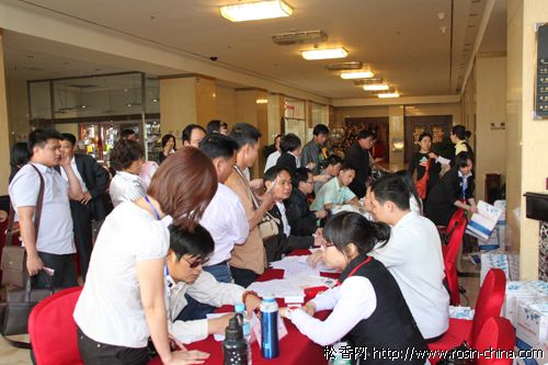 5月10日是“2010中國松香市場信息交流暨貿(mào)易洽談會”報到的日子,早上8:30分負(fù)責(zé)會議簽到的工作人員整裝就位,等待國內(nèi)外參會代表的到來。截止目前,印度,法國,英國的國外客戶已經(jīng)到達(dá)會議酒店,國內(nèi)參會企業(yè)陸續(xù)到達(dá),14:30分 迎來廣西企業(yè)報名高峰期。