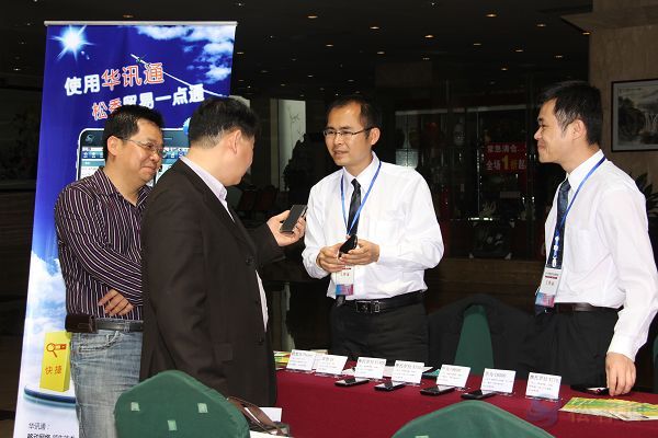 華訊松香網(wǎng)長沙訊 長沙會(huì)議報(bào)到工作在緊鑼密鼓的進(jìn)行著,而在簽到臺(tái)旁邊的“華訊通”展臺(tái)也沒閑著,它吸引了不少參會(huì)代表的駐足觀看。他們聽工作人員仔細(xì)講解,并不時(shí)詢問相關(guān)問題。