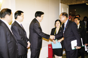 國家林業(yè)局黨組成員、中央紀(jì)委駐局紀(jì)檢組組長陳述賢,廣西壯族自治區(qū)黨委常委車榮福、自治區(qū)政府副主席陳章良,緬甸聯(lián)邦共和國環(huán)境保護(hù)與林業(yè)部部長溫吞,柬埔寨王國農(nóng)林漁業(yè)部林業(yè)局總局長陳金順,泰國皇家森林司社會森林管理局局長普若龍·達(dá)榮泰,老撾農(nóng)業(yè)與林業(yè)部林業(yè)局總局長西拉萬·薩瓦,菲律賓環(huán)境與自然資源部長助理部長瑞基德·里昂,印度尼西亞駐廣州總領(lǐng)事余樹富等參加會見。