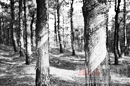 現(xiàn)場(chǎng):松樹(shù)被割皮取脂