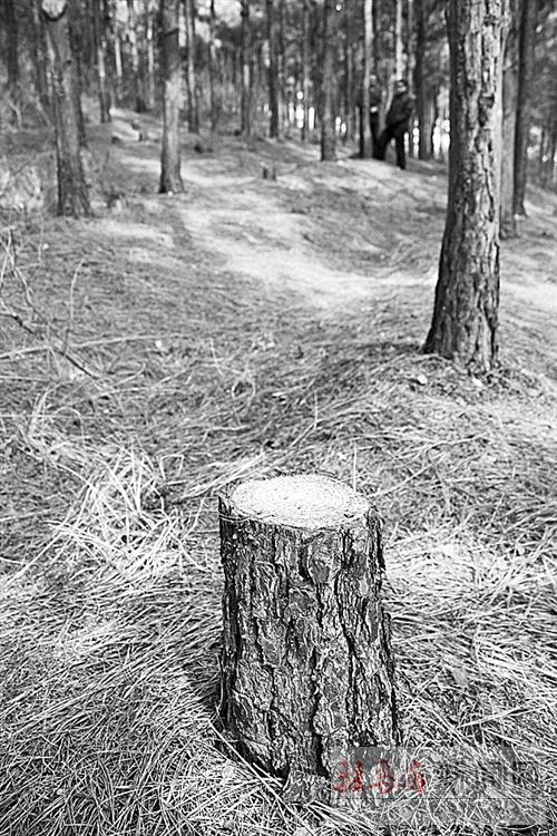 記者在采訪中還發(fā)現(xiàn),至少有20多棵直徑20厘米的松樹(shù)被砍伐,只留下樹(shù)樁。村民說(shuō),這些松樹(shù)大白天被人伐倒,然后裝車運(yùn)走,其實(shí),他們沒(méi)有砍伐證。
