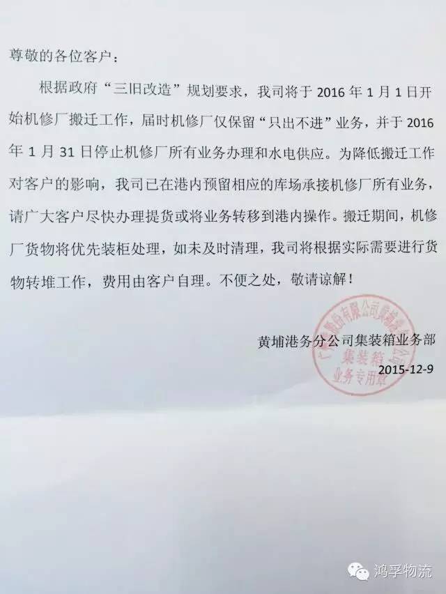 附:黃埔港務(wù)分公司集裝箱業(yè)務(wù)部通知。