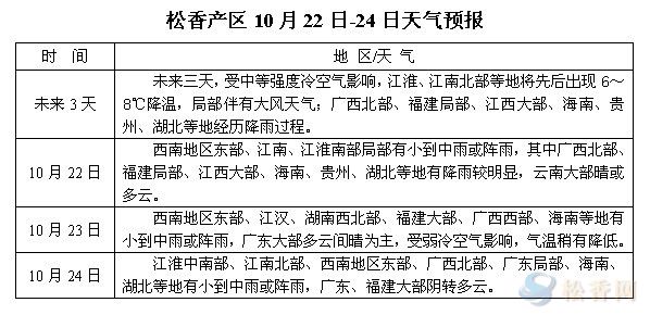 華訊松香網(wǎng)溫馨提醒:未來三日,受中等強(qiáng)度冷空氣影響,江淮、江南北部等地將先后出現(xiàn)不同程度降溫,局部伴有大風(fēng)天氣,廣西北部、福建。江西、貴州桂等地局部有小到中雨或陣雨,廣西中南部、廣東、云南大部晴或多云天氣為主。進(jìn)入十月下旬,多數(shù)產(chǎn)區(qū)氣溫趨低,江西、福建、湖北、貴州等地迎來最后一波松脂采收時(shí)期,預(yù)計(jì)到本月底或下月初下一批松脂將陸續(xù)下山。在無利多因素刺激下,本周兩廣、江西、福建等地松脂或仍緩慢流出,而云南隨著旺季深入,脂量或仍可保持小幅增長態(tài)勢(shì)。