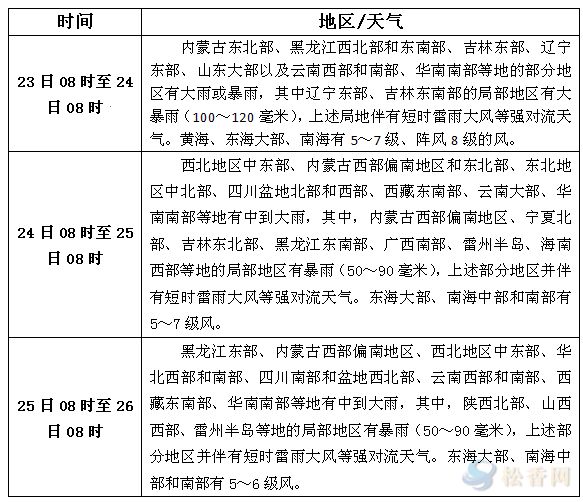 華訊松香網(wǎng)溫馨提醒:未來(lái)三天云南西部和南部、華南南部等地的部分地區(qū)有大雨或暴雨,并伴有短時(shí)雷雨大風(fēng)等強(qiáng)對(duì)流天氣。另外,預(yù)計(jì)今天白天福建中部、江西東北部、湖南大部、湖北西部和南部以及重慶等地的部分地區(qū)最高氣溫可達(dá)37~39℃。請(qǐng)上述地區(qū)注意避開(kāi)極端天氣。