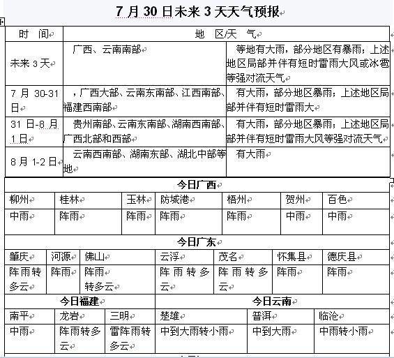 松香產(chǎn)區(qū)7月30日天氣預(yù)報