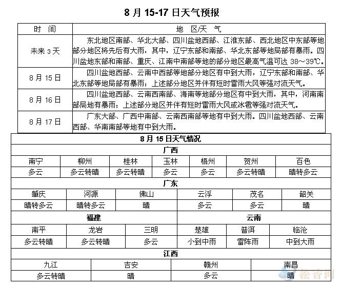 松香產(chǎn)區(qū)8月15-17日天氣預報