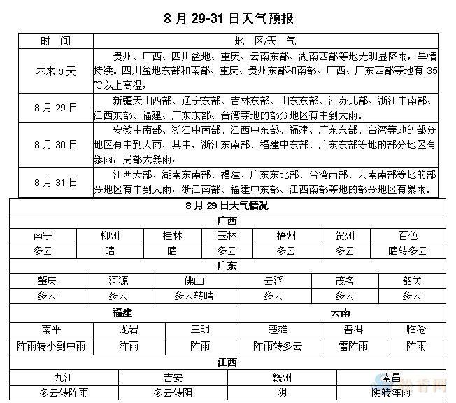 松香產(chǎn)區(qū)8月29-31日天氣預(yù)報
