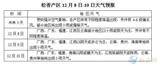 華訊松香網(wǎng)提醒:隨著冬季到來,較強(qiáng)冷空氣影響較為頻繁,降溫大風(fēng)天氣將會(huì)增多,仍在上山采收松脂的產(chǎn)區(qū)需注意降溫與大風(fēng)天氣對松脂出油量及質(zhì)量的影響,合理安排采收。