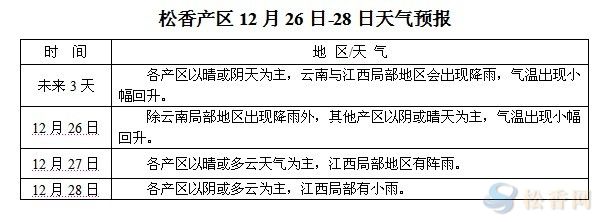松香產(chǎn)區(qū)12月26日-28日天氣預報