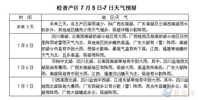 松香產(chǎn)區(qū)7月5日-7日天氣預(yù)報
