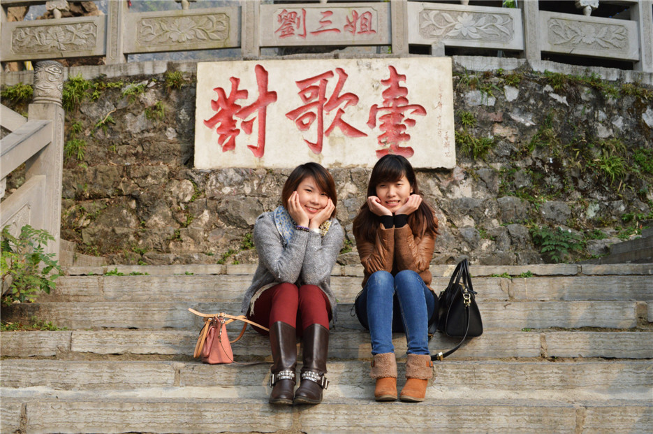 劉三姐的四妹、五妹在對(duì)歌臺(tái)前賣萌