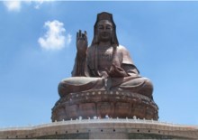 云海蓮臺(tái)地處西樵山風(fēng)景名勝區(qū)中心地帶,是以觀音文化為主題的大型景區(qū)。主要建筑有觀音法相、牌坊、影壁、放生池和浮雕等。觀音法相高達(dá)61.9米,是世界上最高的觀音造像。游客從北向入口,迎面聳立著一座六柱五門天柱牌坊,牌坊后隔著一個(gè)廣場,建有影壁,用優(yōu)質(zhì)花崗巖雕筑,左右各設(shè)山門,壁后刻有觀音六字真言,漢文由九華山住持、安徽省佛教協(xié)會(huì)會(huì)長仁德手書,藏文由西藏活佛親筆題寫。影壁上還刻有韋陀法像。影壁后為一放生池,池旁圍以蓮花作雕的白石欄桿,跨過放生池上的石拱橋,沿著283級開闊而整齊的石臺(tái)階,便可達(dá)觀音法像的蓮花座下。