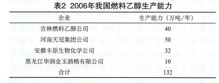 在“十五”期間,我國(guó)批準(zhǔn)河南天冠、黑龍江華潤(rùn)、吉林燃料乙醇和安徽豐原四家企業(yè)加工燃料乙醇,設(shè)計(jì)產(chǎn)能為122萬(wàn)噸/年,到2005年年底總產(chǎn)能己超過(guò)設(shè)計(jì)產(chǎn)能。到2006年我國(guó)燃料乙醇生產(chǎn)能力已達(dá)到132萬(wàn)噸/年(見(jiàn)表2)。