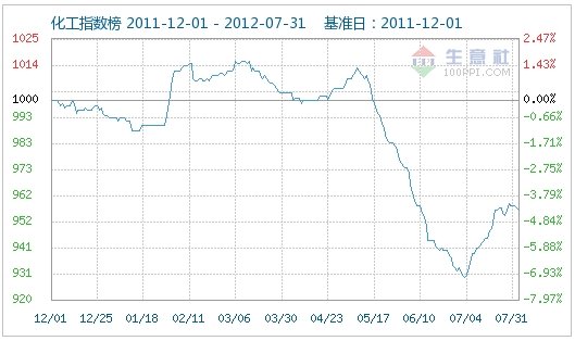 2012年7月化工大宗商品價(jià)格漲跌榜