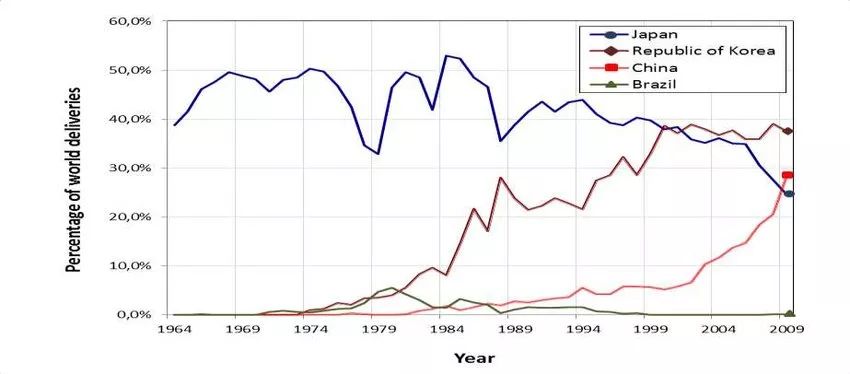 再舉一個例子。1970年代,巴西是僅次于日本的世界第2大造船國,鼎盛時一年造船產(chǎn)量達72.9萬噸,提供的直接就業(yè)崗位近4萬個,還帶動10萬個間接就業(yè)。