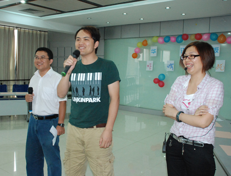 本期華訊版“非誠勿擾”以“卡拉OK ”接歌賽+趣味競技+“非誠勿擾”的三合一模式開展,分三個環(huán)節(jié)進行。節(jié)目開始前,全體員工先分為三組,分別設(shè)定“口號”,第一組“沒有你做不到,只有你想不到”;第二組“紅燈亮到底”;第三組“放眼全球我最棒”, 響亮的口號喊出了每人心中的激動與渴望。活動由松香網(wǎng)仇志利與淀粉網(wǎng)劉峰聯(lián)袂主持。