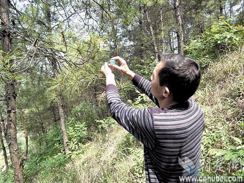由于持續(xù)干旱,今年湖北十堰市40余萬畝馬尾松蟲害形勢嚴(yán)峻。為把可能發(fā)生的災(zāi)害降到最小,近日,十堰市森防站在城區(qū)和武當(dāng)山的6千畝馬尾松林中,投放3萬余枚“生物導(dǎo)彈”(如圖)。這是該市首次引進(jìn)“生物導(dǎo)彈防治馬尾松毛蟲”新技術(shù)。